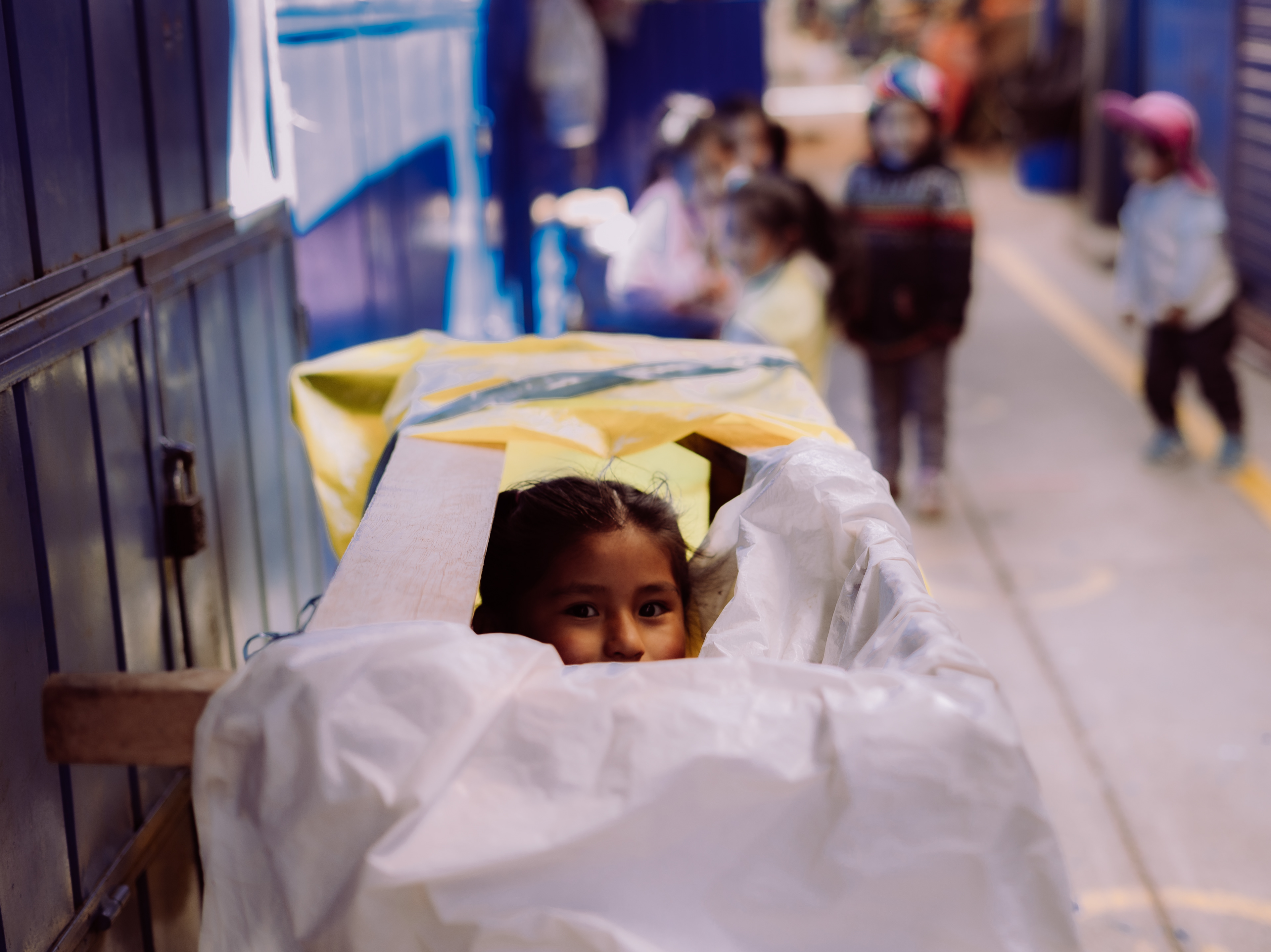 Children playing in a market, Cusco, Peru